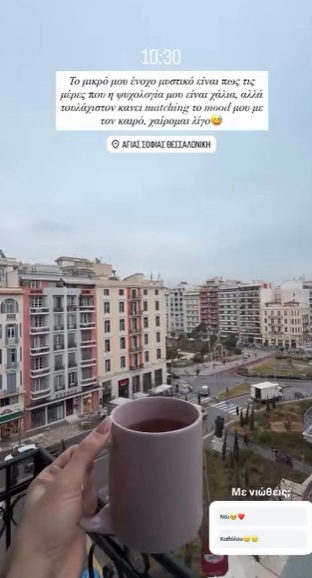 Μεταξύ άλλων, η Ιωάννα Τούνη μοιράστηκε μαζί τους ότι η ψυχολογία της δεν είναι καθόλου καλή το τελευταίο διάστημα και την παρηγορεί που και ο καιρός είναι μουντός, καθώς θα ήταν σε πολύ πιο δύσκολη κατάσταση αν έξω είχε λιακάδα.